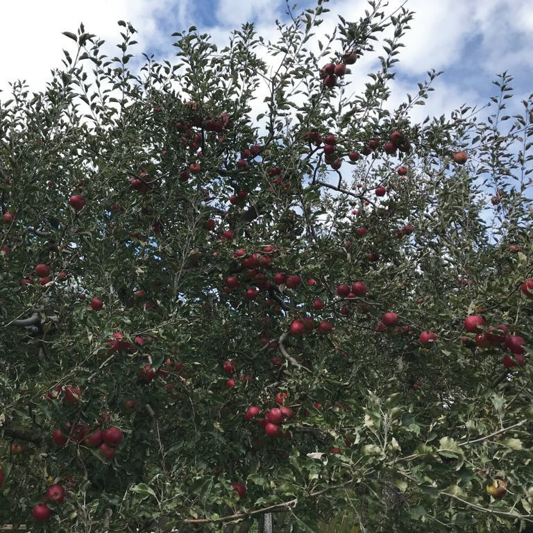 Plantarea și întreținerea pomilor: Livada de meri are rânduri bine spațiate pentru a asigura o bună circulație a aerului. Pomii sunt întreținuți permanent pentru a stimula creșterea și a menține forma optimă a coroanei.